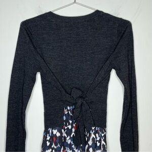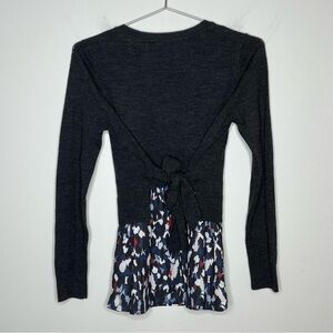 CLUB Monaco 100% Wool Layered Crewneck Sweater Blouse Tie Back Bow