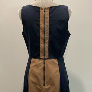 Club Monaco Letitia Navy and Brown Color Block Midi Pencil Dress
