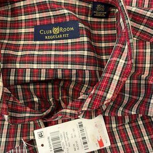 CLUB ROOM Men's Red Plaid Estate Dress Shirt - Size 15 1/2 x 32/33 - NWT $52.50. Regular fit. Wrinkle resistant. 100% cotton, made in Nicaragua. Neck size 15 1/2. Sleeve length 32/33. Long sleeved. One chest pocket. Color: Red Tartan.