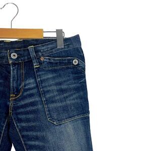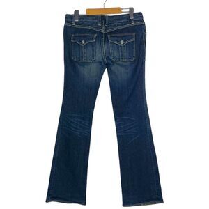 CLUB MONACO Women's Blue Dark Wash Distressed Patch Pocket Bootcut Jeans US 2