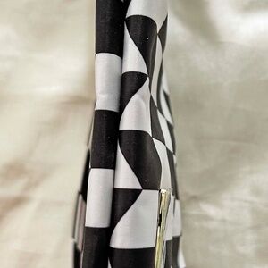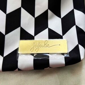 CLUTCH OR MAKEUP BAG, BLACK & WHITE, FABRIC, TEFLON PROTECTED, INSIDE POCKET, SHORT HANDLE, BY JUJUBE, TAGS ON NEW NEVER USED, NO DAMAGE