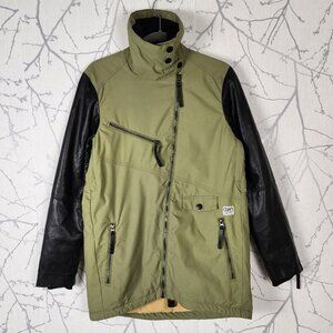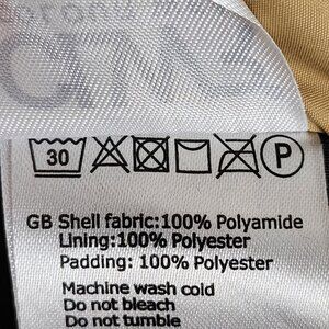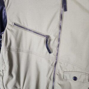 Good Used Condition: no rips, marks or stains. Missing the black zipper puller at one of the cuffs