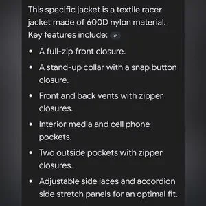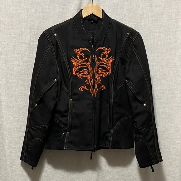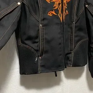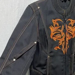 Canadian Motorcycle Company jacket featuring all the bells and whistles of a modern professional motorcycle racing jacket. 100% nylon exterior, 100% polyester interior. Embroidered front graphic. EUC. Sized as small. PtP/21” Length/25”
