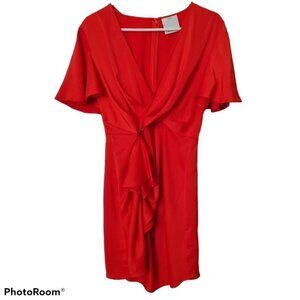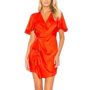 C/MEO COLLECTIVE No Less Mini Dress Faux Wrap Red Dress in Morange