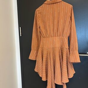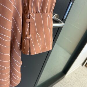 C/MEO Collective size S excellent used condition. Amazing brand- this can double as ultra classic but also could be styled to be the office siren!!! Not a Small Small see measurements- this is also ultra flattering. Step out in style with this elegant orange dress featuring a unique pattern. Perfect for any occasion, this dress combines comfort with a chic design.