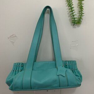 In excellent preowned condition, genuine leather, colour Teal , very beautiful and rare design by CNKW rock it for the it’s classy unique style.