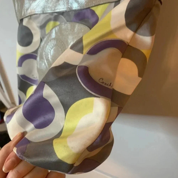 COACH 14970 Julia Op Art Signature Lilac Silver Leather Shoulder Tote Bag