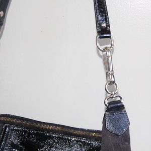 Made of Black patent leather, black smooth leather and Black canvas printed with the Coach monogram