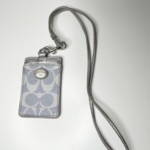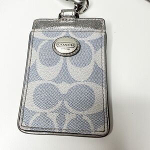 COACH Blue and Silver Signature C Lanyard ID Holder | Signature Canvas
