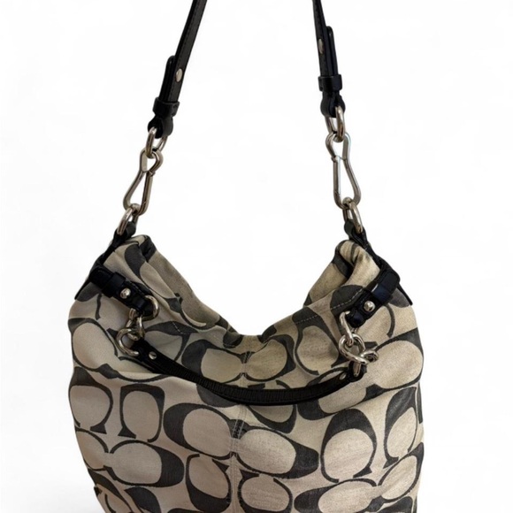 COACH Brooke Signature Sateen Satchel Shoulder Bag Cream and Black