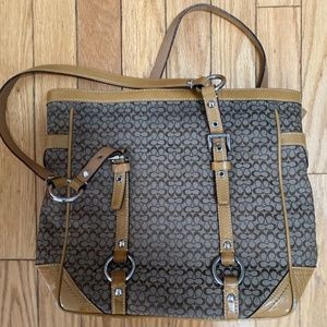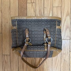 Good used condition COACH F12344 Signature Tan Patent Leather Gallery Tote Shoulder Bag Purse