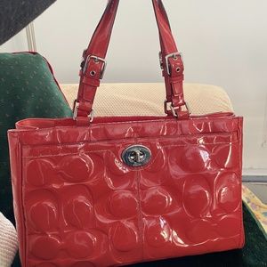COACH HAMPTON CORAL PATENT LEATHER CARRYALL BAG