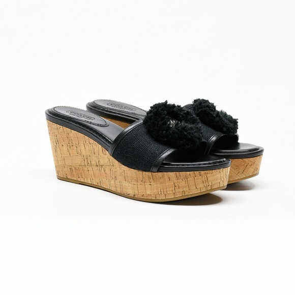 COACH Jazmin Canvas & Natural Cork Wedge Sandals Women's Size 7B
