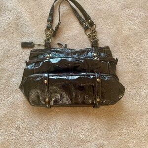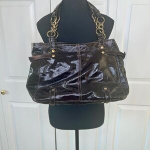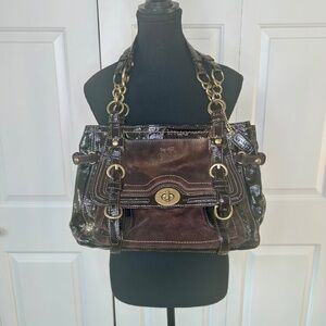COACH Legacy Garcia Brown Patent Leather and Suede Hobo Bag with Brass Hardware