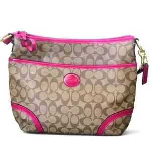 Selling a good as new COACH Peyton Handbag in Khaki/Magenta trim.