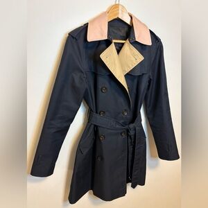 COACH New York Doubled Breasted Trench Coat | Navy Beige Pink | Size Medium
