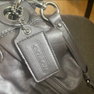 Features smooth leather with silver tone hardware, top magnetic snap closure, leather handles, detachable leather shoulder strap, front embossed coach logo, Coach hangtag. Interior is lined with sateen and has a zip, cellphone, and a multi-function slip pockets.