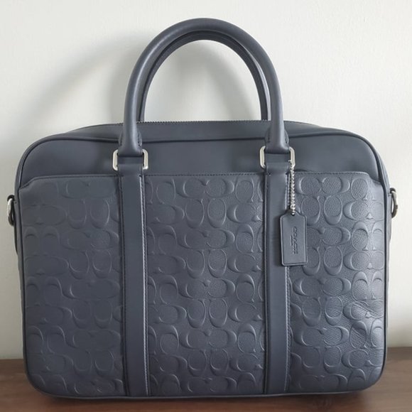 Coach Perry Slim Briefcase in Signature Crossgrain Leather. Colour is Midnight (Blue/Grey). Incredible condition. Used for 1 month.