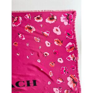 COACH Pink Poppy Floral Print Silk Crepe Fringe 43" x 43" Square Scarf