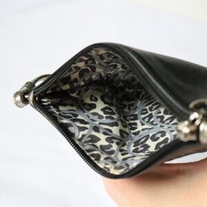 COACH Poppy Black & Silver Leather Wristlet Wallet Purse Mini