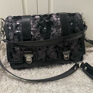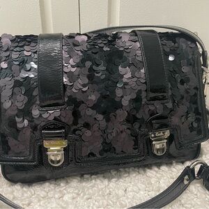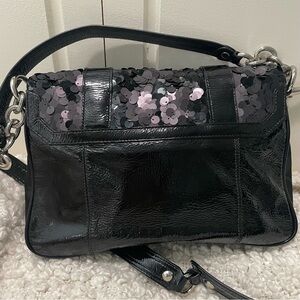 Coach Poppy Sequin Black Patent Leather Crossbody Bag Purse RARE