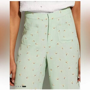 COACH Printed Loom Pants. Green and white size 0/ XS-S NWOT lightweight summer
