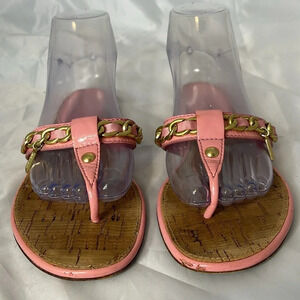 COACH Rizzo Pink Gold Chain Thong Sandals Cork Footbed Leather Sole As Is 7.5B