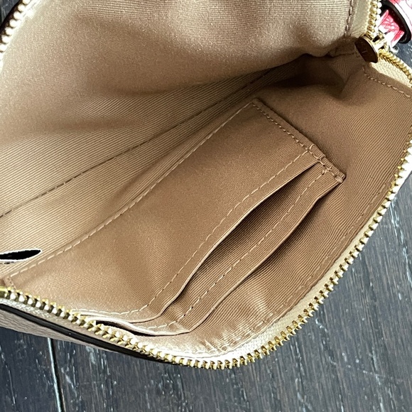 COACH SNOW BEAR CORNER ZIP WRISTLET with bear snowflake charm HTF white wallet