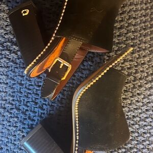 Worn once. These Coach black suede sandals feature beautiful gold-tone hardware detailing, perfect for dressing up or elevating a casual outfit.