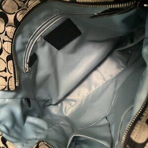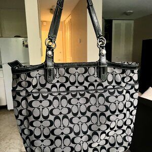 COACH Signature Canvas Leather Medium Tote - Black/Grey Monogram