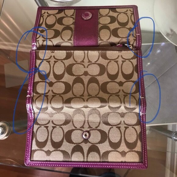 COACH Signature Tan Purple Leather Large Wallet Monogram Organizer Clutch Canvas
