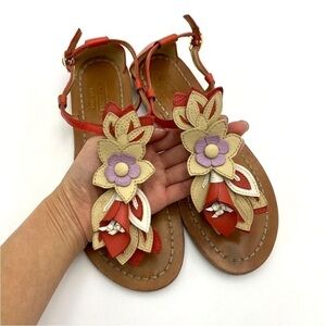 COACH Thong Sandals Sierra A8535 Flowers Orange Leather Sz 5B