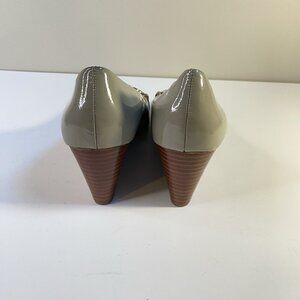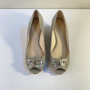 Coach Patent Leather Peep-Toe Heels Size 8B Taupe/Beige