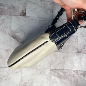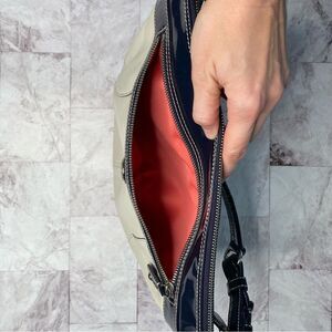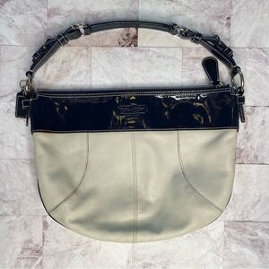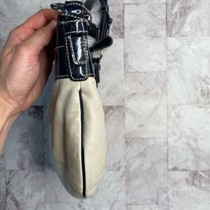 COACH Y2K Era Laura Hobo Style Cream Leather and Navy Patent Trim Handbag