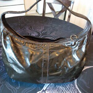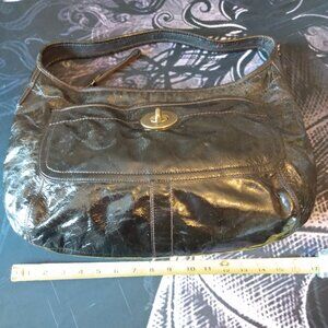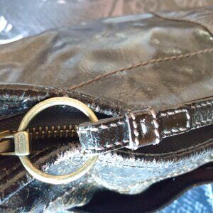 Brown patent leather shoulder bag from 2007. Gently used. 16X12X5