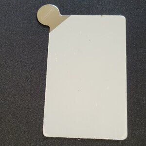 Never used. This mirror still has the white protective film intact, but has a few scuffs on the stainless steel side (the front, see photos)