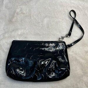 COACH woman’s black bow wristlet. Classic logo design. Wrist strap. New condition.