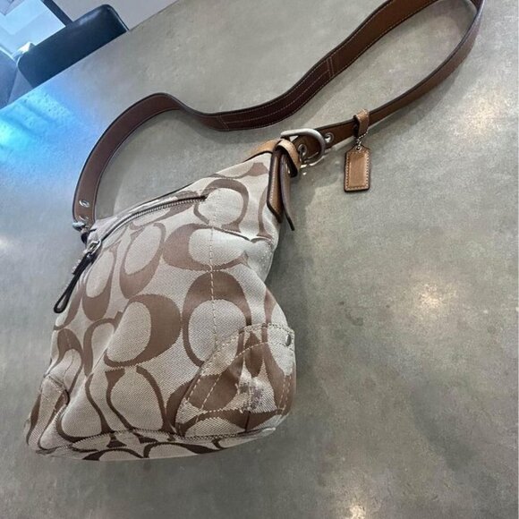 COACH- woman’s crossbody bag. Signature logo. Adjustable strap. Full zipper. (Some wear)