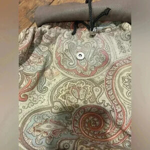 Stylish and versatile backpack from Coachella featuring a removable front pouch system. The bag combines a neutral faux leather with a printed paisley fabric for a boho-chic look. Perfect for everyday use, travel, or festivals. This model includes the Base Coachella Argile and a separate interchangeable pouch (retailed at $59 + tx).