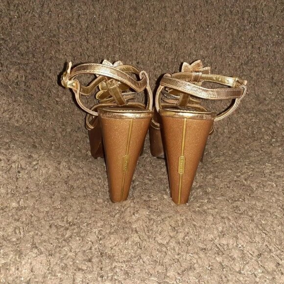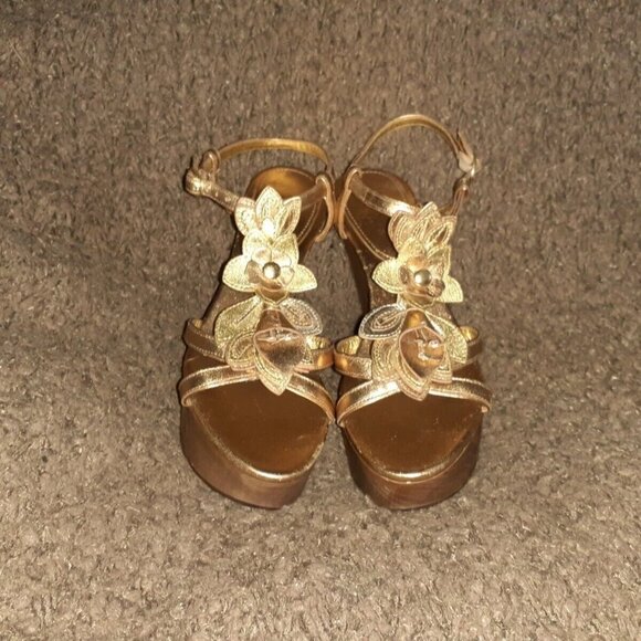 COACH-Jeanna TriColor Metallic Leather FloralPlatform Sandals-Sz 8.5-Near Mint