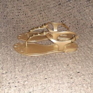 COACH-Phila-Gold Jelly Thong Sandals-T-Strap/Ankle Strap Buckle-Sz 8B-Near Mint