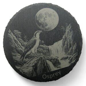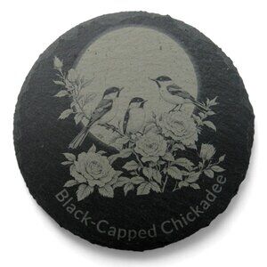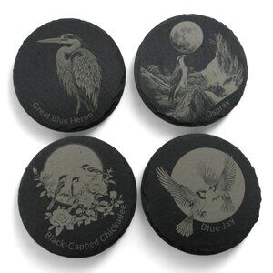 These round slate coasters feature charming bird illustrations, making them functional and decorative for your home.
