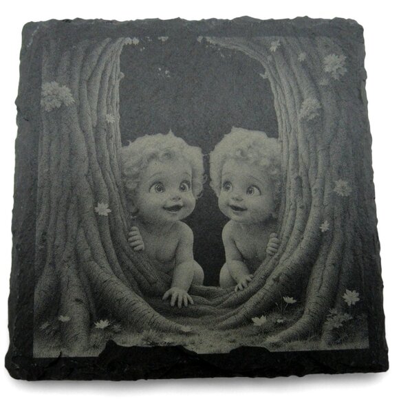 These slate coasters feature charming vintage-style illustrations of angelic children and puppies, making them functional and decorative for your home.