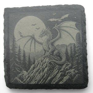 These slate coasters feature charming illustrations of dragons, making them functional and decorative for your home.