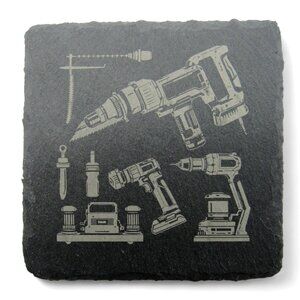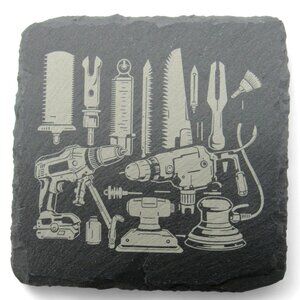 These slate coasters feature charming illustrations of various tools, making them functional and decorative for your home.