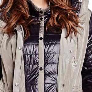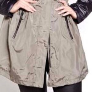 COAT, RAIN, OLIVE, SZ 4X, FRONT SNAPS, POCKETS, HOOD, MARCONA for ADDITION ELLE, TAG ON, NEVER WORN