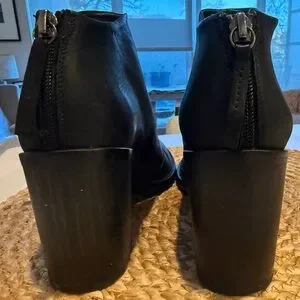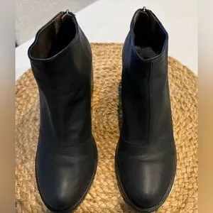 Creamy soft matte black leather Coclico booties. Back zipper, 3 1/2” dark wood heel. In excellent condition.