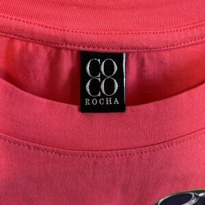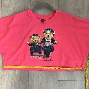 NWOT This cute COCO ROCHA t-shirt with 2 graphic teddy bears on a motorcycle and “it’s time to have fun” in a pink coral tone. One size and it fits oversized and is cropped. New without tag. There is no tag but it feels like cotton.