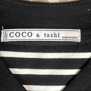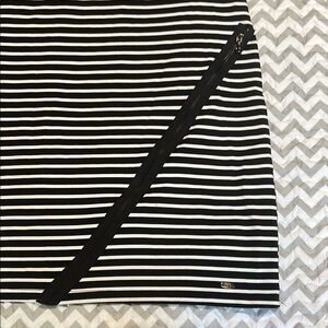 COCO & tashi Black & White striped V-neck Dress with zipper detailing sz L