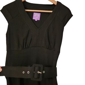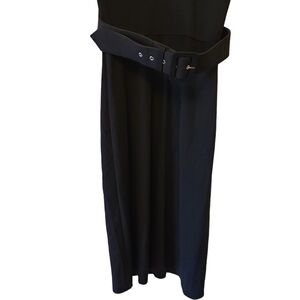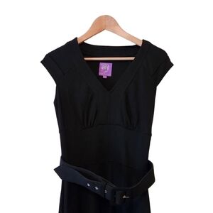 COCO & tashi, black,belted, cap sleeved, v-neck midi dress. V-shaped front, trimed on the bottom of chest,wide belt at the waist, slit up the back. Super comfortable, cute black dress and in great condition size Small